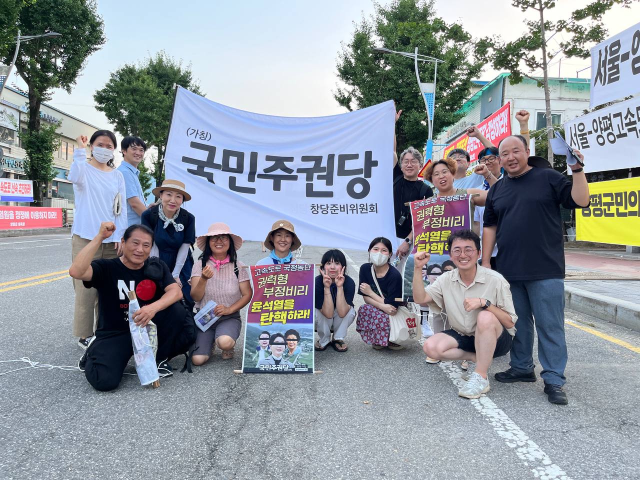 강렬한 태양빛으로 샤워를 하며 온몸에서는 뜨거운 땀이 눈물 흐르듯 주룩주룩 흘러내리고 후끈하게 달궈진 아스팔트 위에 두 엉덩이는 익어 호떡이 되게 앉아 있었어도, 우리 주권당 당원들은 '국민주권당' 기치 아래 모여 국정조사와 특검 촉구를 목이 아프게 소리쳤다.