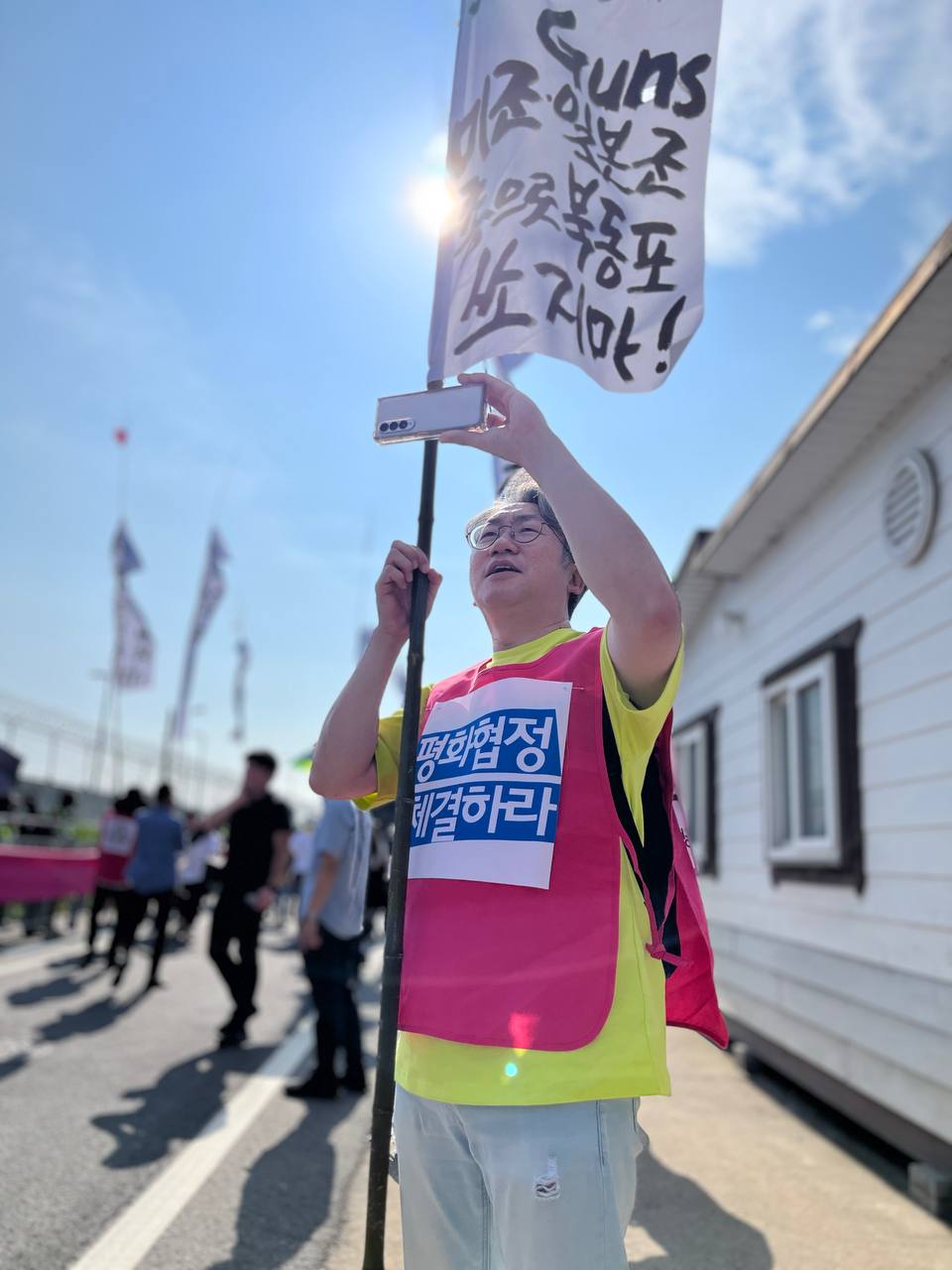나와 국민주권당 중앙위원들은 올해 정전 협정 70주년을 맞아 미군기지로 달려가 '평화협정 맺지 않을 거면 나가라'는 뜻을 전하기 위해, 정전 협정을 맺은 날인 7월 27일에 평화 어머니회의 주최로 캠프 험프리를 핑크 천(핑순이)로 빙 둘러 인간 띠를 만드는 행사를 함께했다.