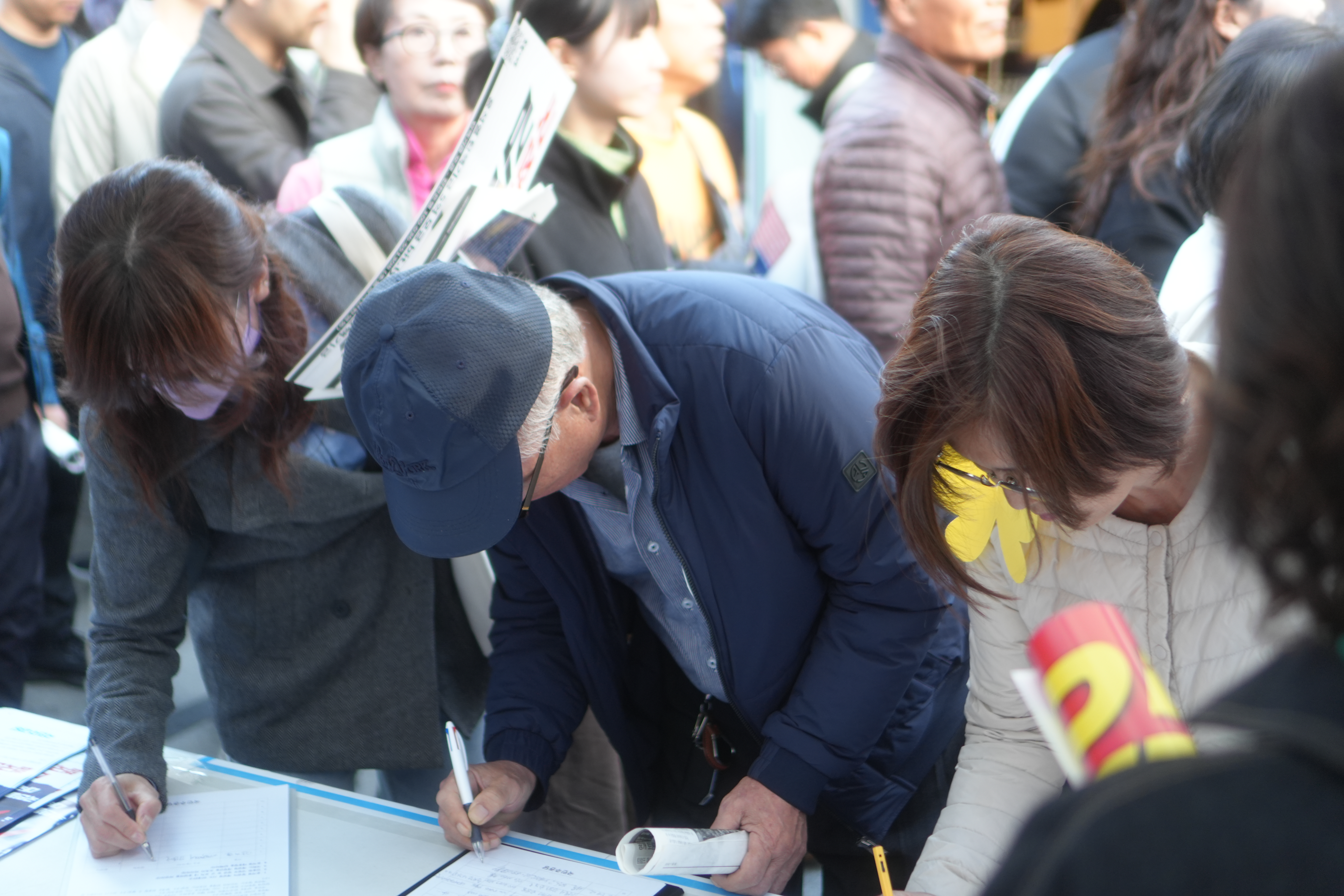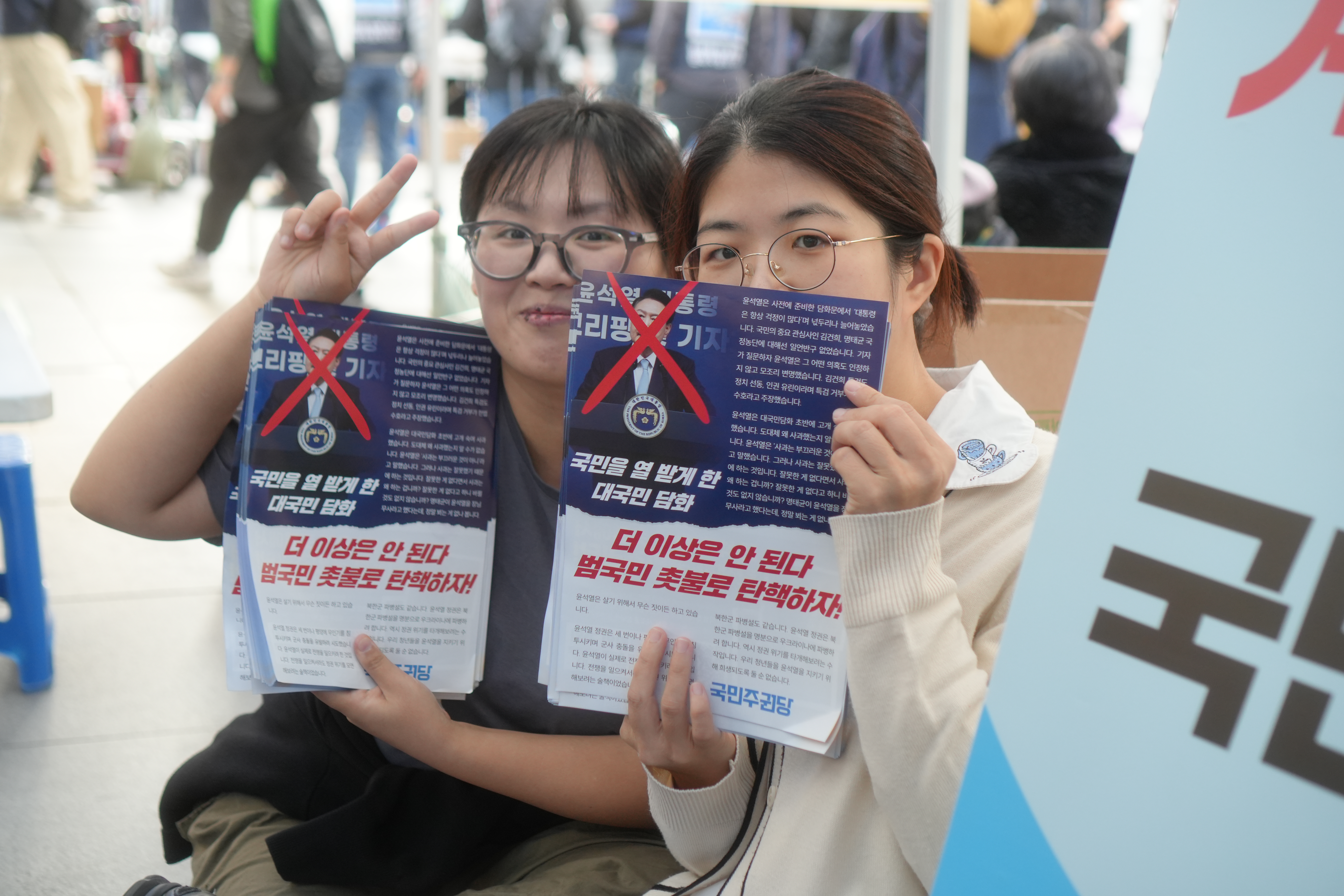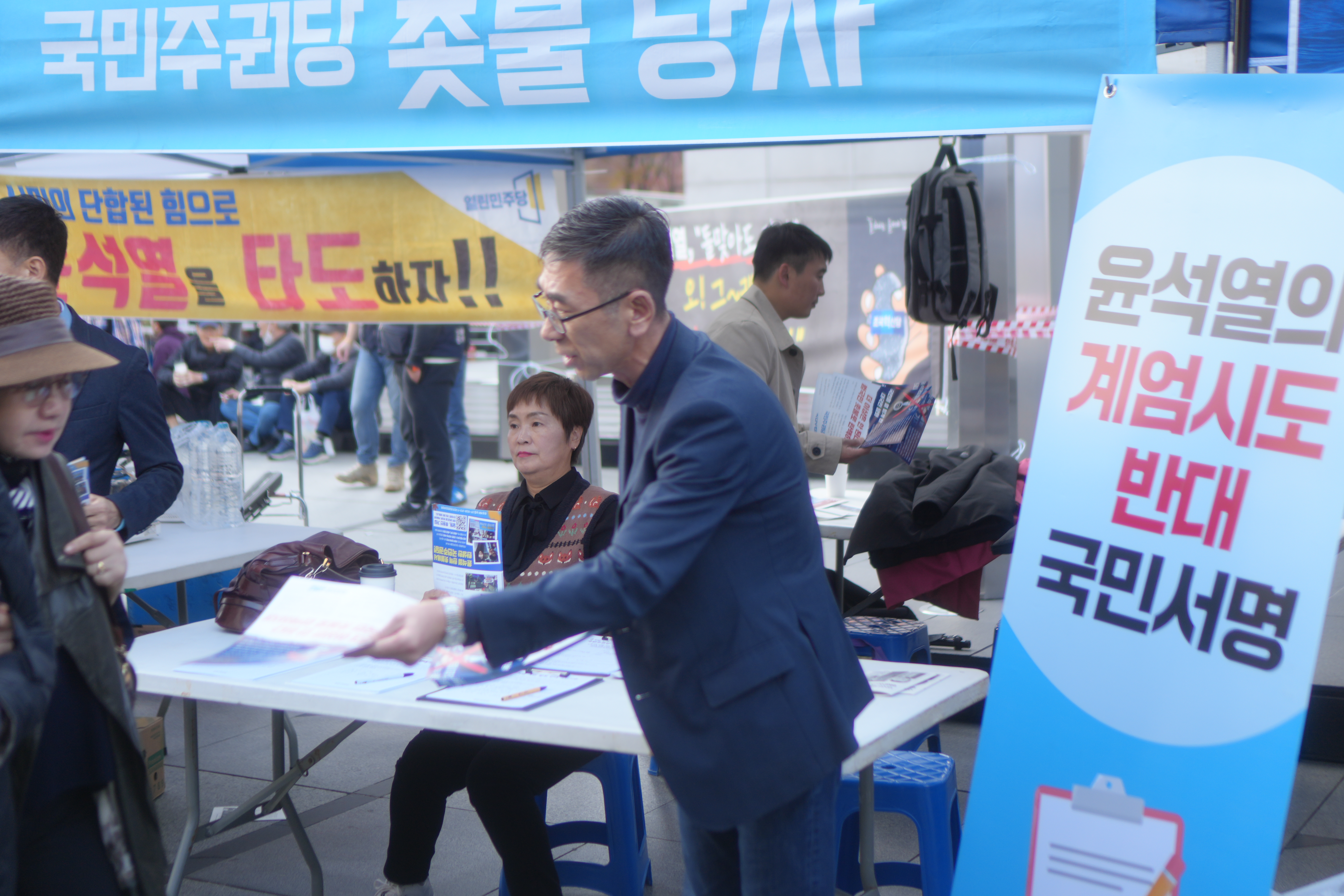 국민주권당 당원들은 윤석열 탄핵, 국힘당 해체의 내용을 담은 유인물 수천 장을 배포했습니다. 부스에서는 계엄 시도 반대 서명을 받았습니다. 많은 시민들이 참여해주셨습니다.