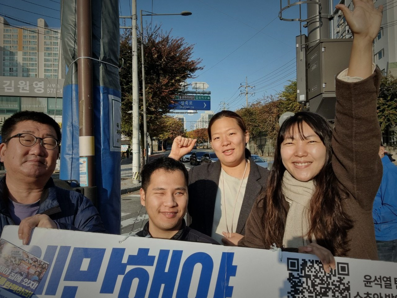 오늘은 북부경찰서 교차로에서 아침 인사를 드렸습니다. 박동관 선생님과 쌍촌동매니아님이 함께해주셔서 흥성흥성한 아침 인사였습니다. 민주당에서도 김건희 특검을 위한 아침 실천을 진행해서, 함께 탄핵과 특검을 힘차게 외쳤습니다.