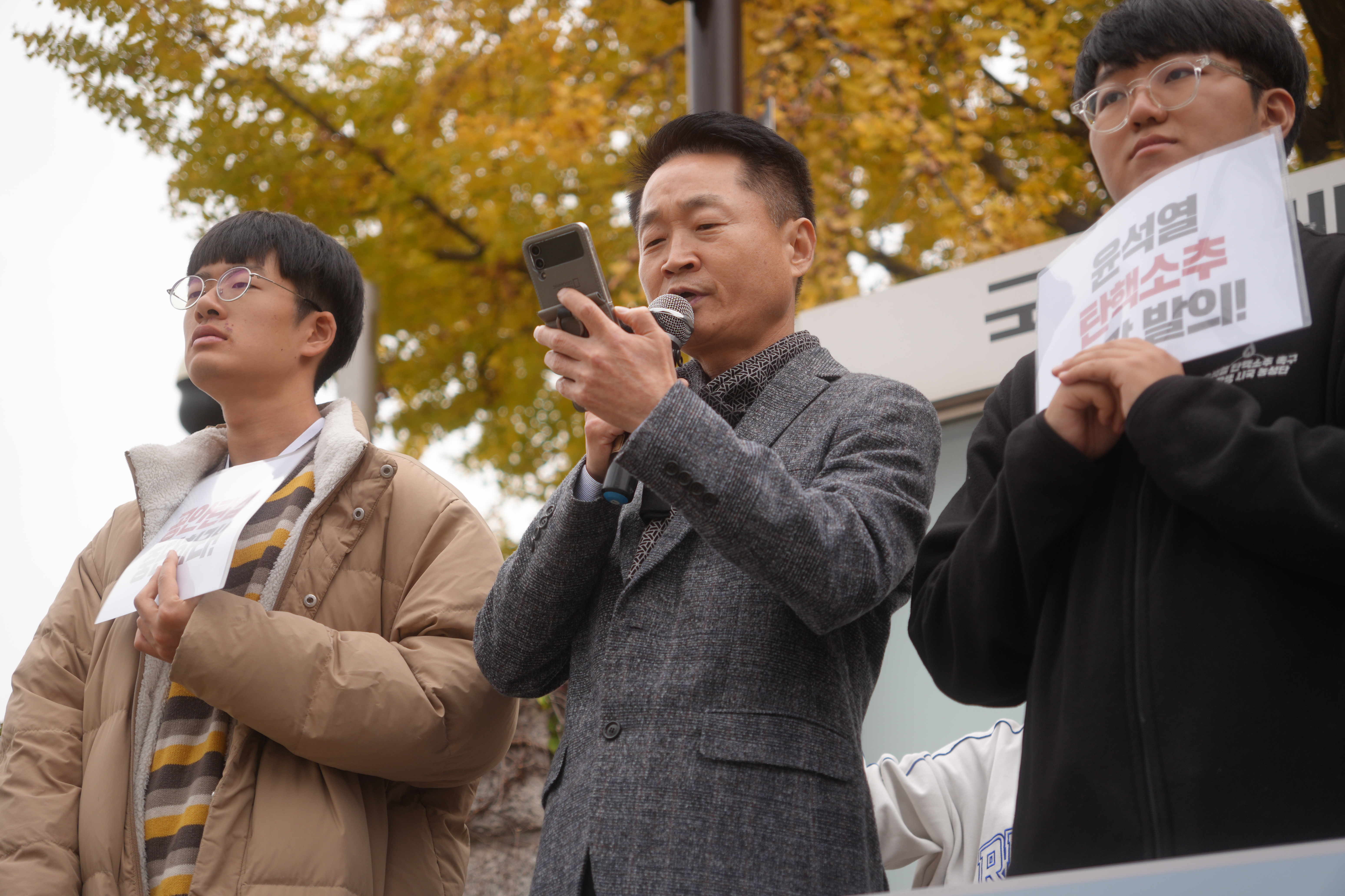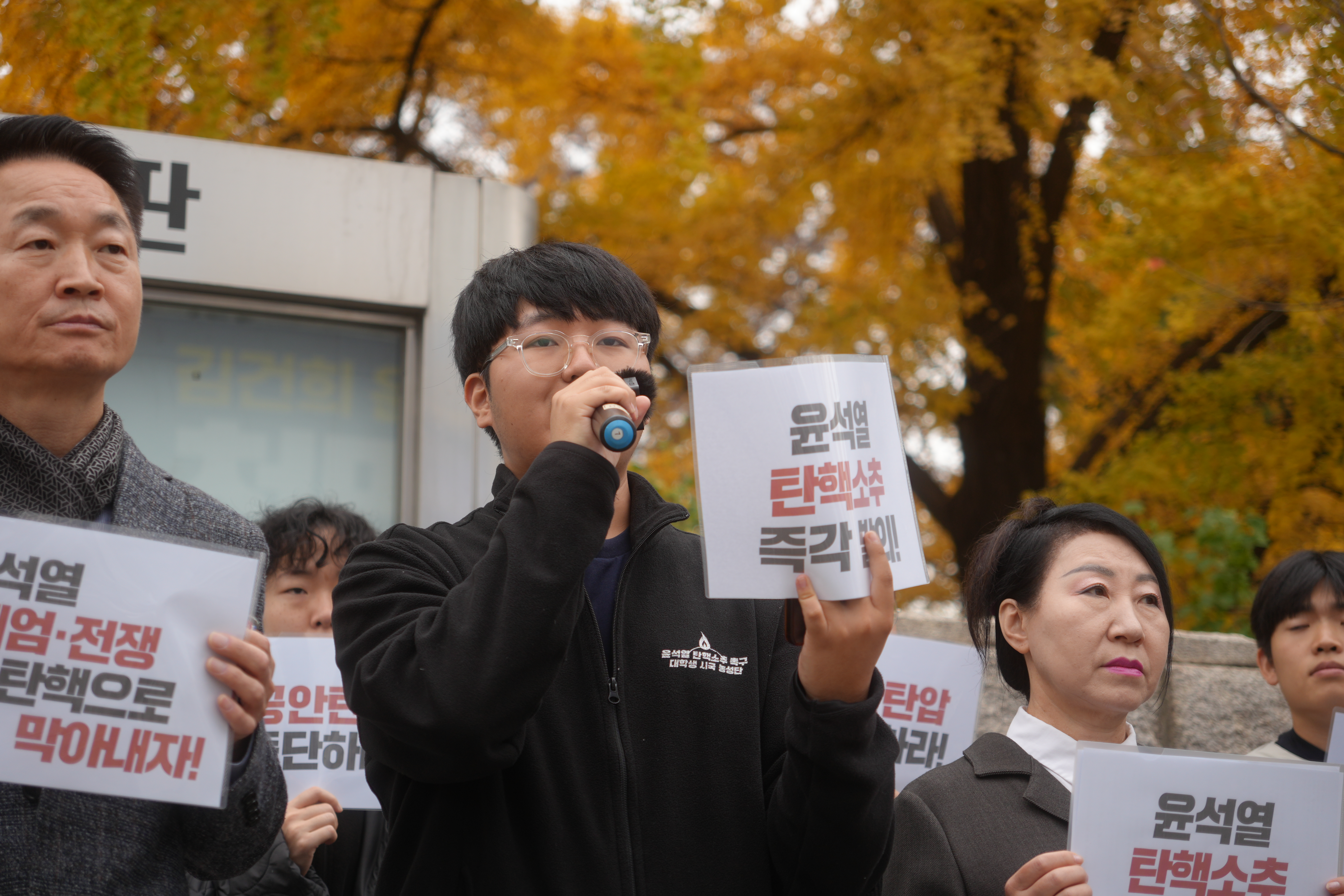 두 번째 발언으로 나선 대학생 시국 농성단 강태웅 단원은 국회에서 조성되고 있는 탄핵의 흐름을 소개했습니다. 국회안에서 탄핵 준비 의원 연대가 꾸려지고, 대학생과 국회의원이 함께 준비한 ‘탄핵 공청회’가 15일, 국회에서 열린다는 소식을 전했습니다. 대학생들의 선도적인 농성 투쟁에 대한 참가자들의 격려와 박수가 있었습니다.