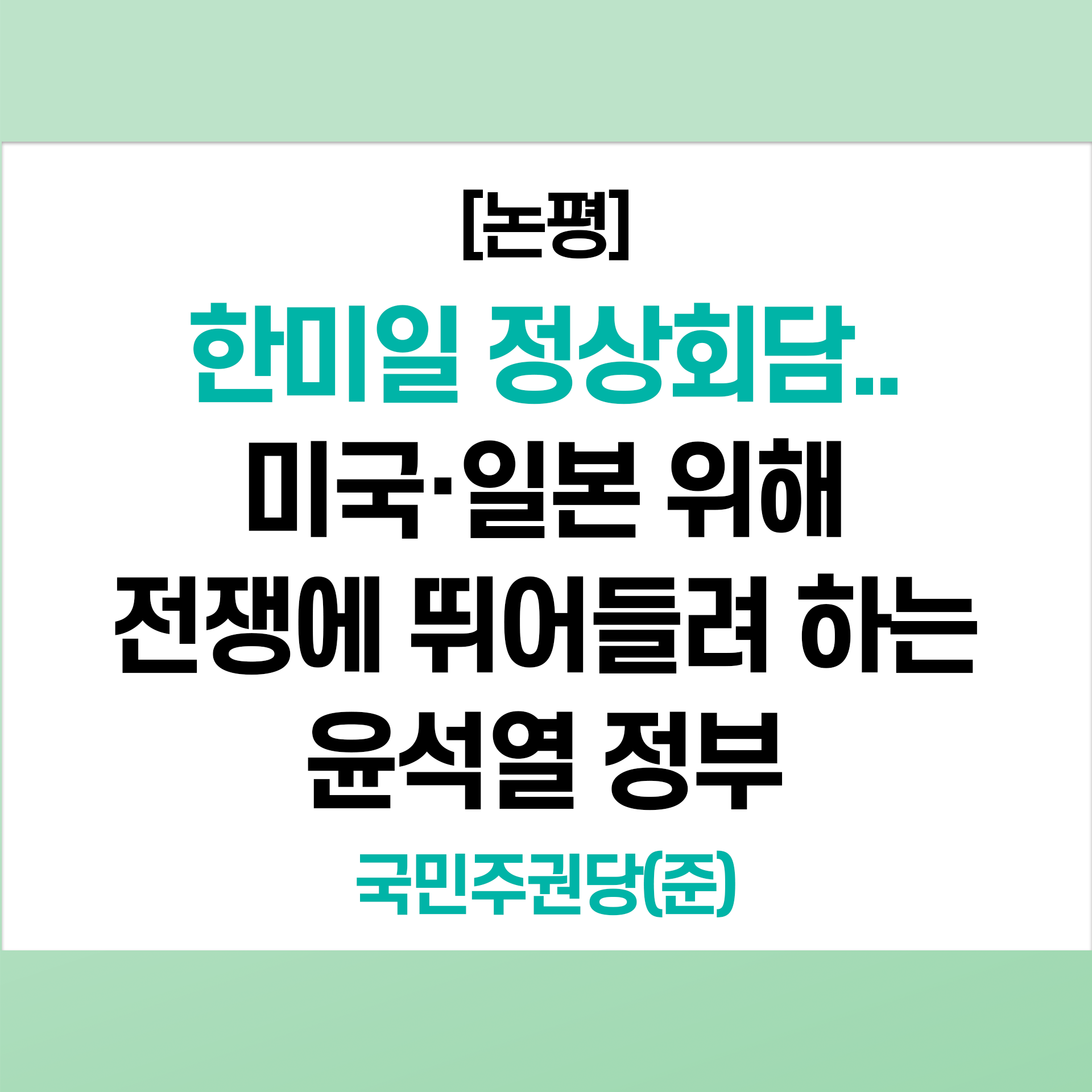 글 제목 : [논평] 한미일 정상회담..미국·일본 위해 전쟁에 뛰어들려 하는 윤석열 정부