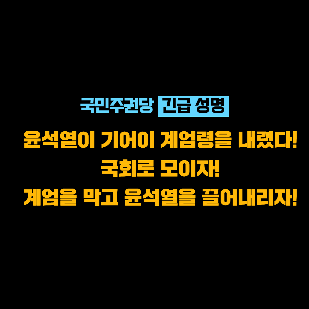 [긴급 성명] 윤석열이 기어이 계엄령을 내렸다! 국회로 모이자! 계엄을 막고 윤석열을 끌어내리자!