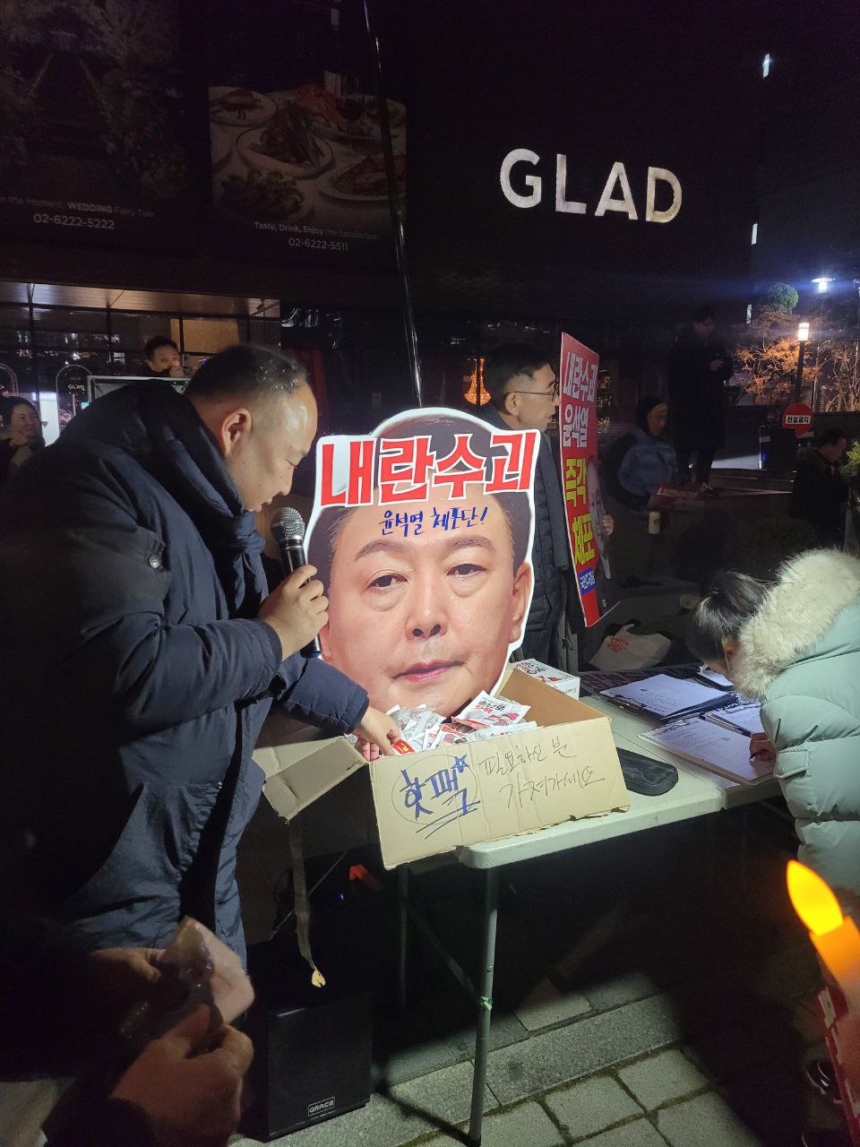 한 시민 분께서 서명하러 오는 분들께 나눠주라고, 따뜻한 핫팩을 한 상자나 주고 가셨습니다.