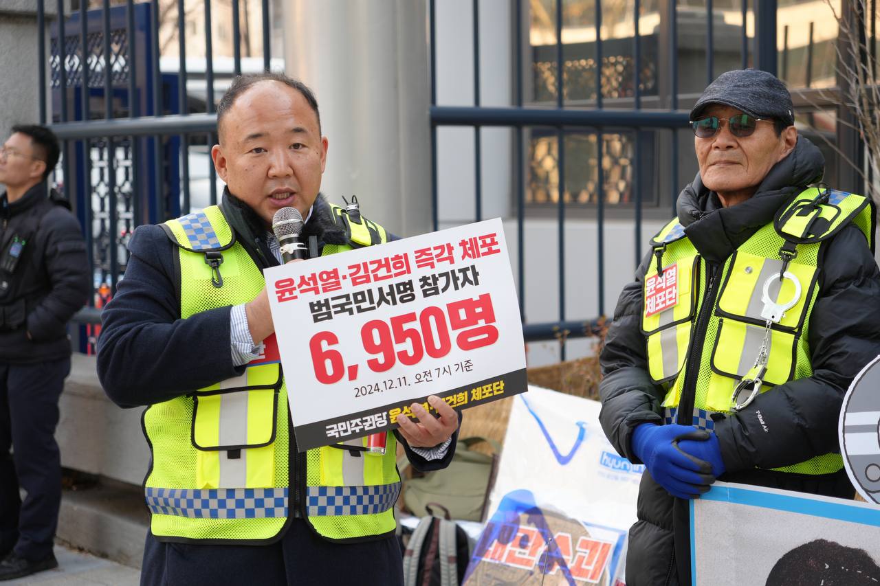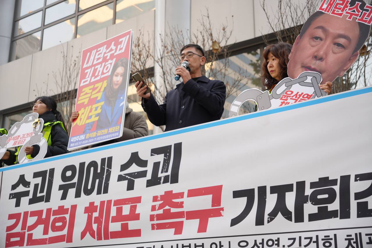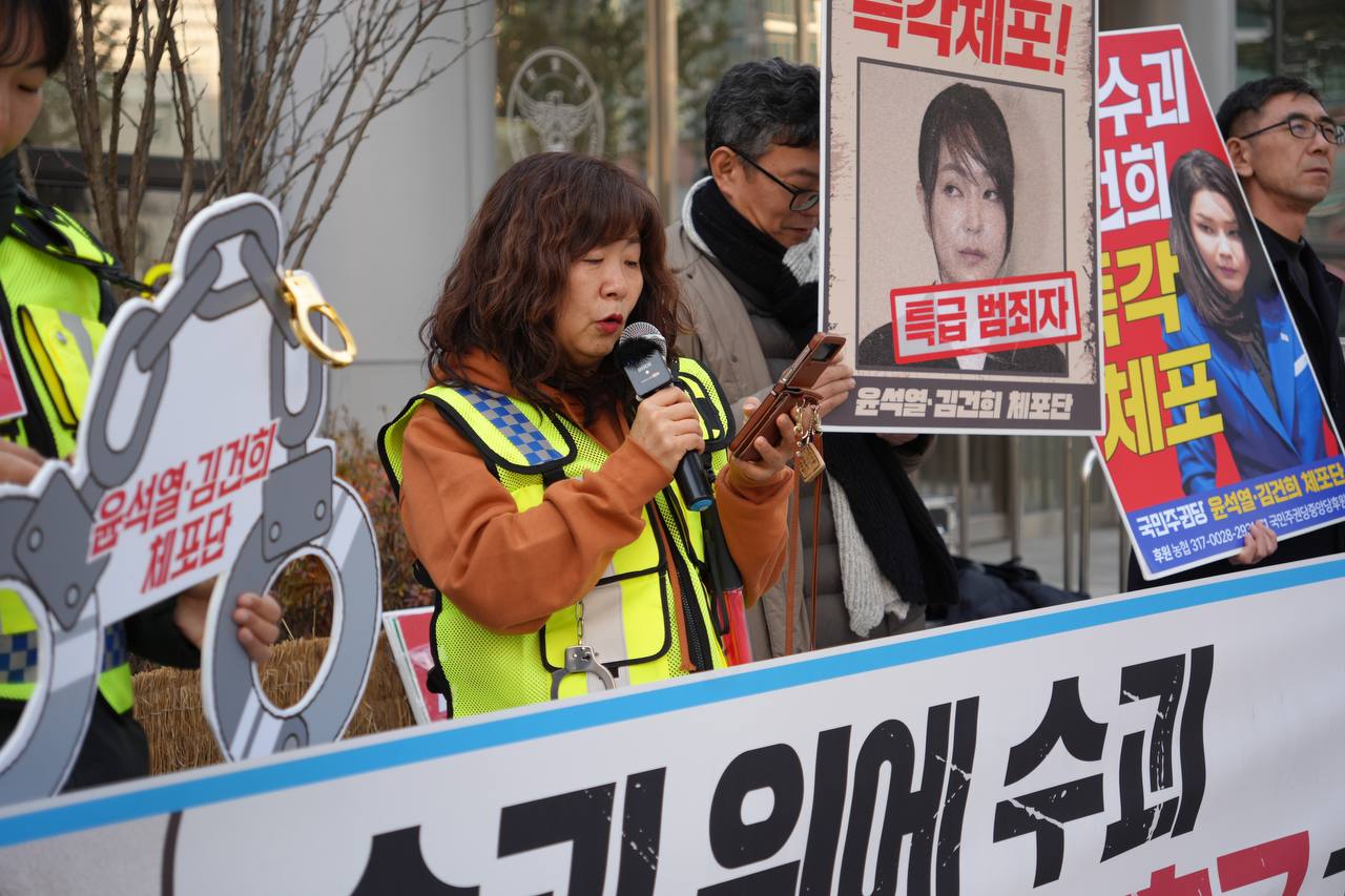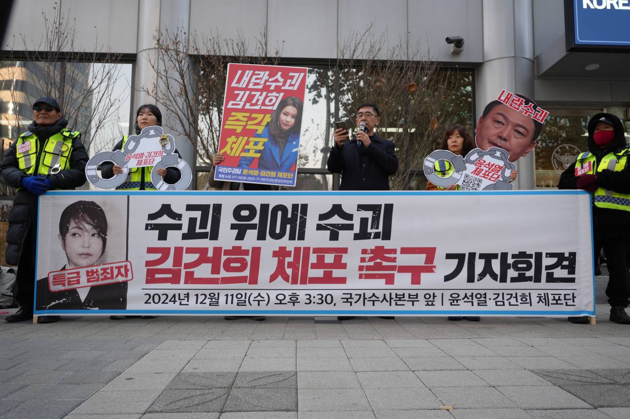 윤서열·김건희 체포단은 3시 30분 국가수사본부 앞에서 윤석열 김건희 즉각 체포를 촉구하는 기자회견을 열었습니다.
