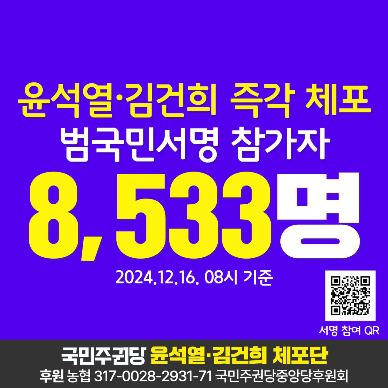 글 제목 : 12/16 윤석열·김건희 즉각 체포·구속 범국민서명 참가자