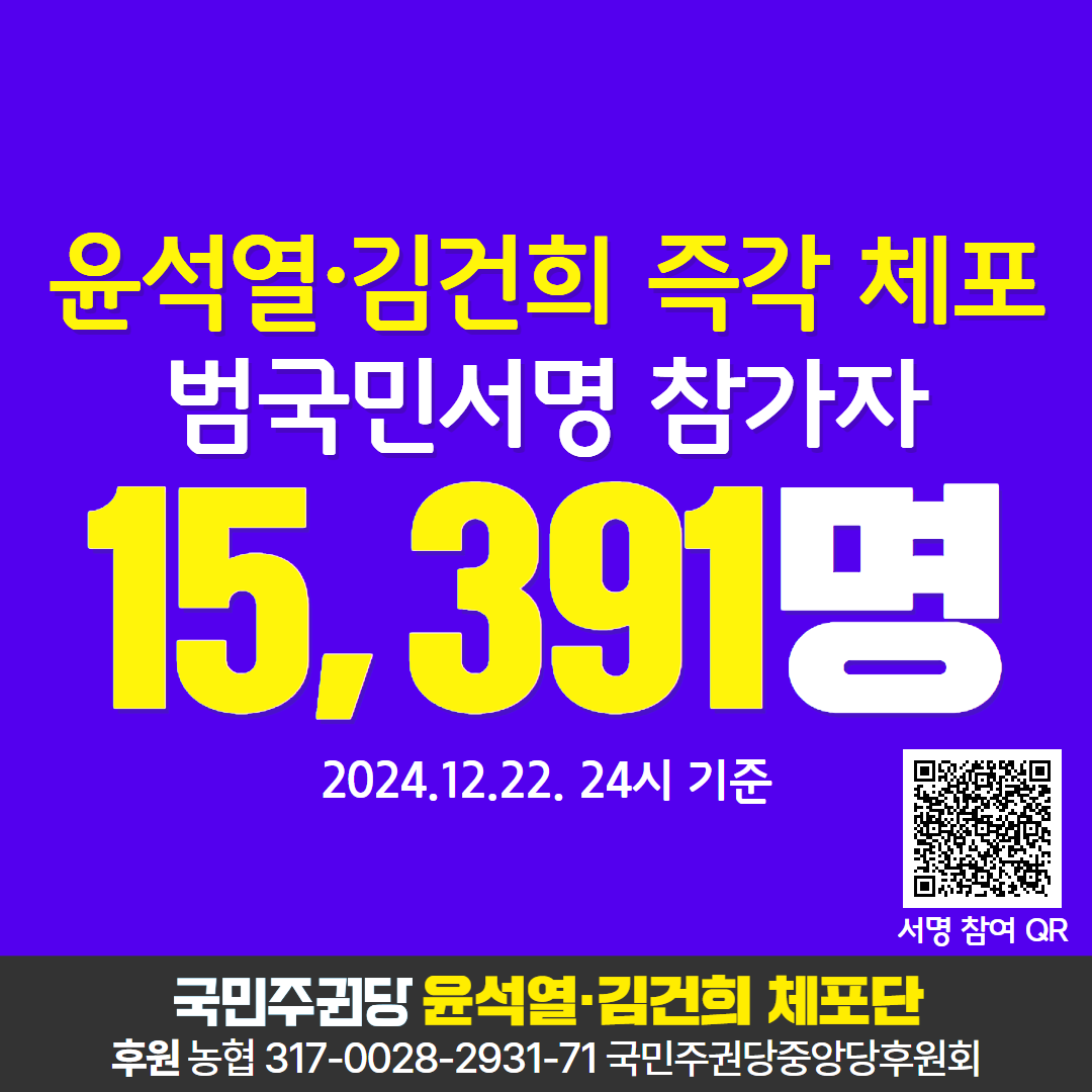 글 제목 : [12/22] 윤석열·김건희 즉각 체포 범국민서명 현황