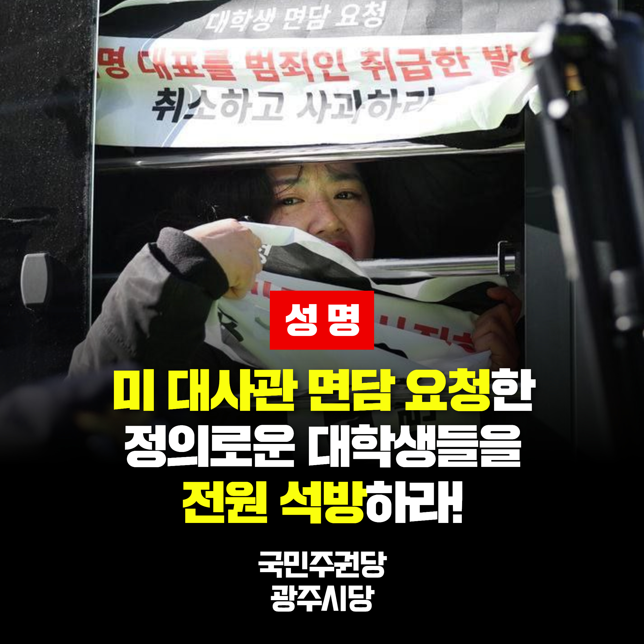[국민주권당 광주시당 성명] 미 대사관 면담 요청한 정의로운 대학생들을 전원 석방하라!