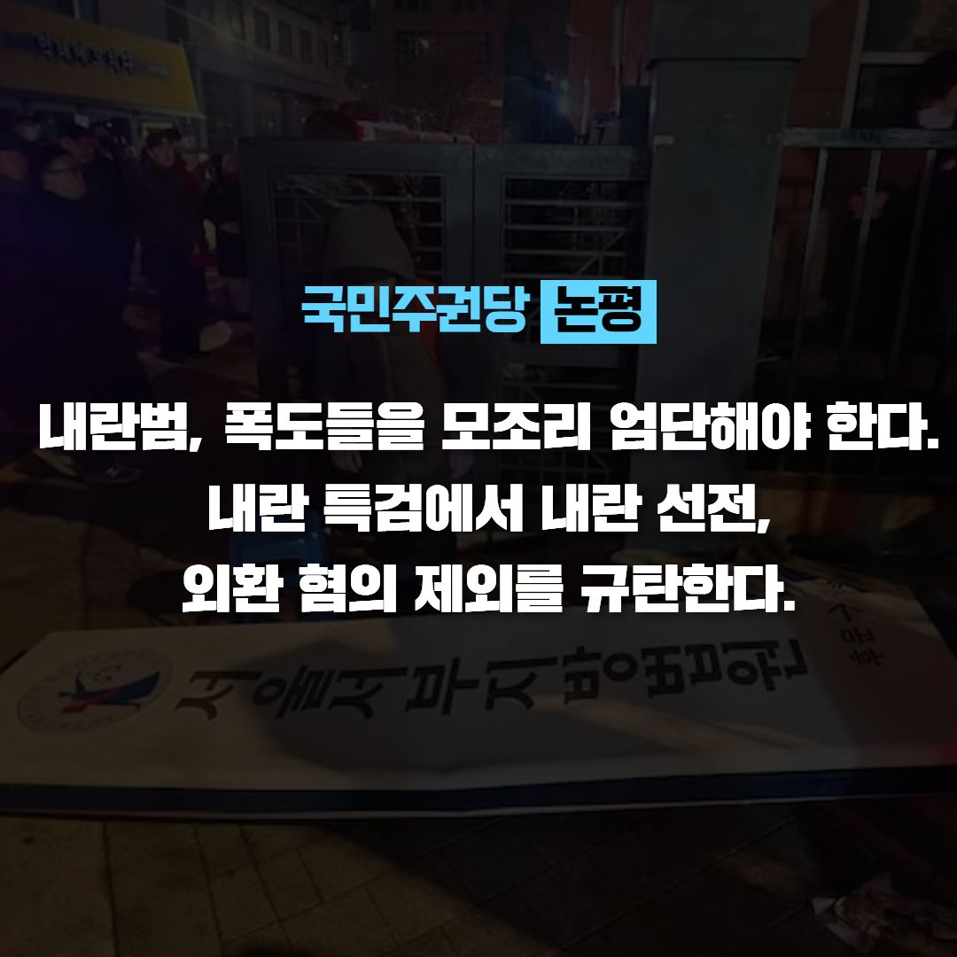 글 제목 : [논평] 내란범, 폭도들을 모조리 엄단해야 한다. 내란 특검에서 내란 선전·외환 혐의 제외를 규탄한다