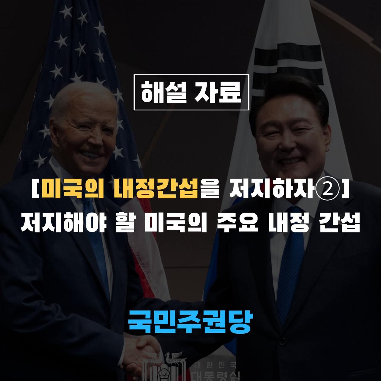 글 제목 : [미국의 내정간섭을 저지하자②] 저지해야 할 미국의 주요 내정 간섭