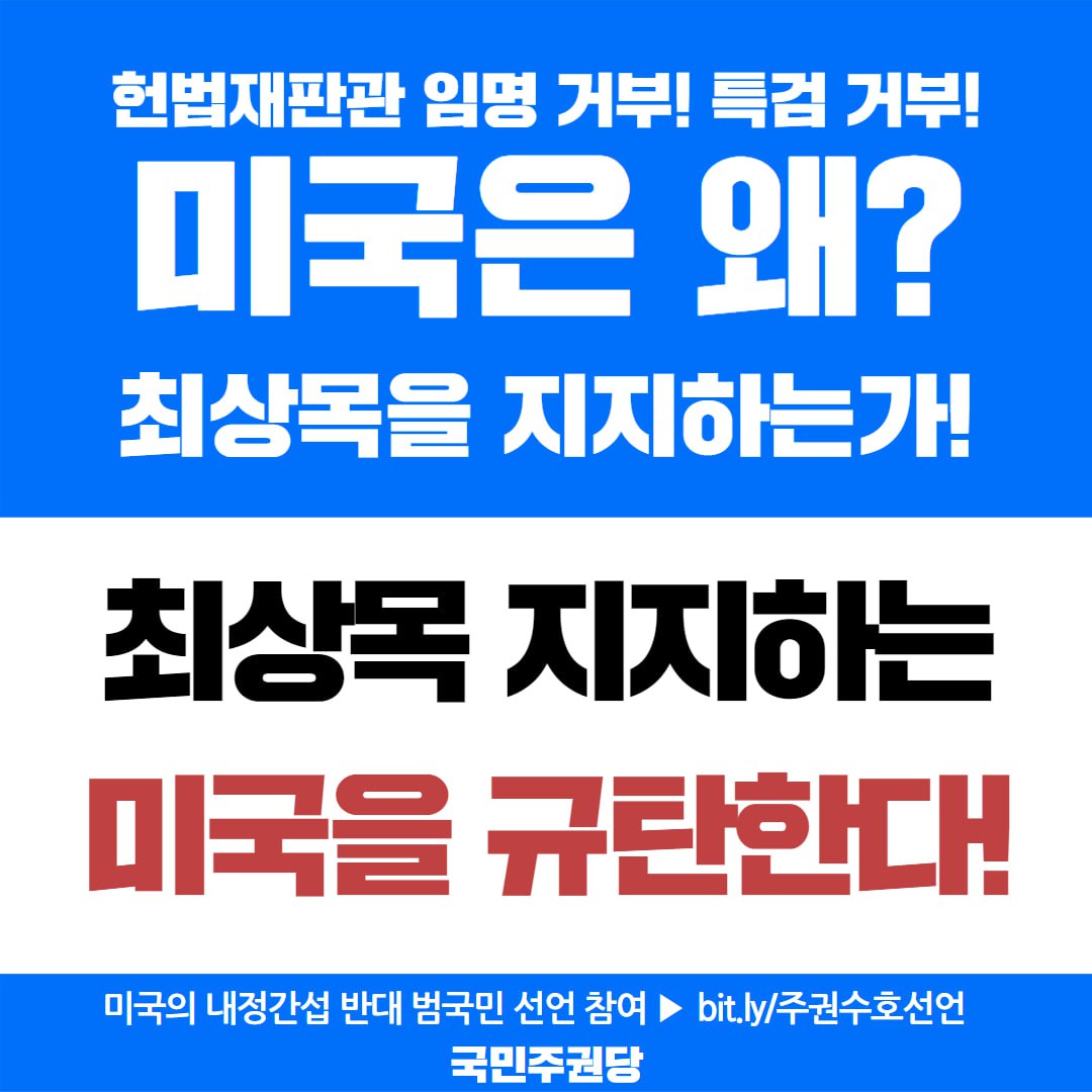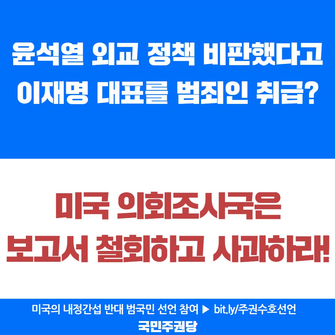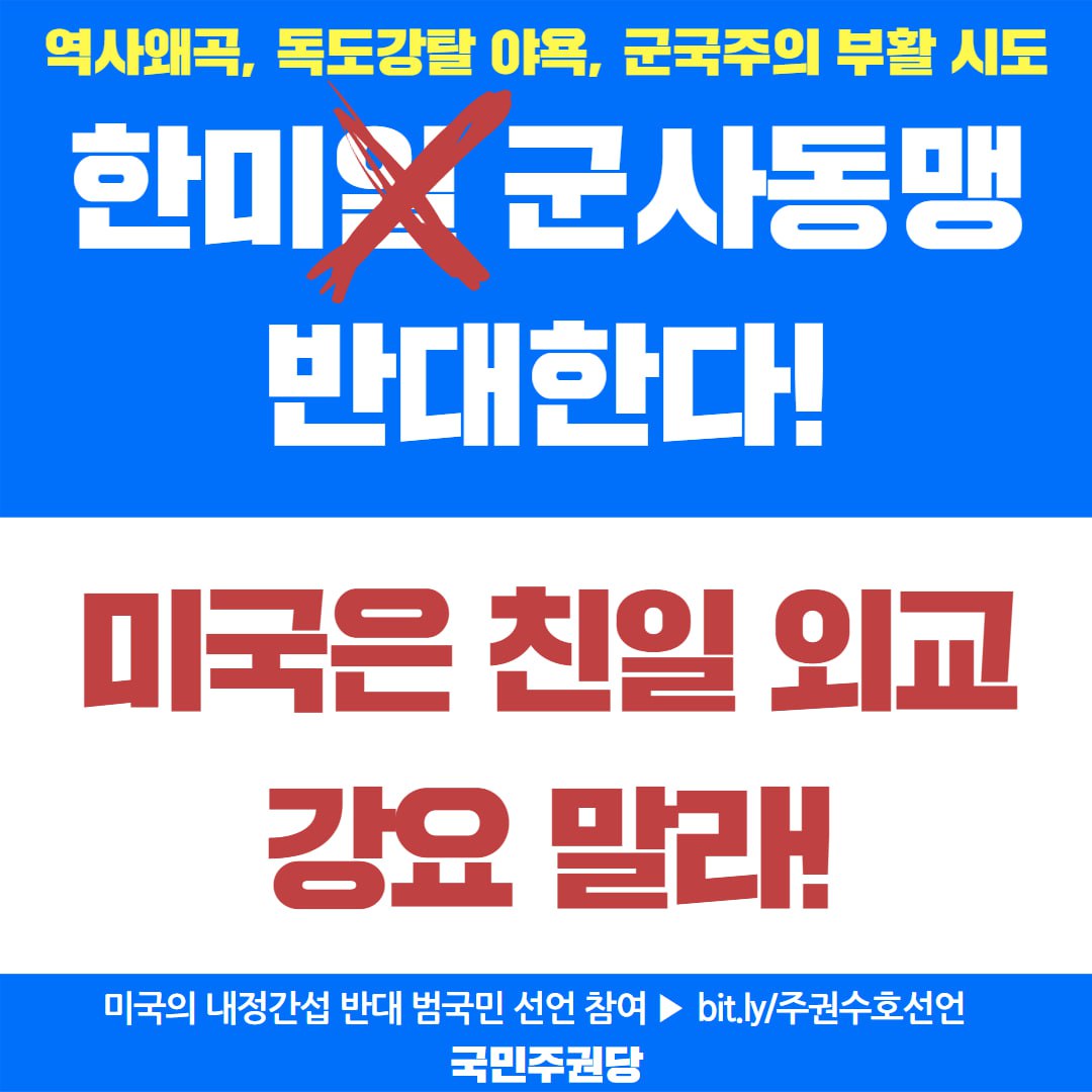 자료실/홍보자료실 2025. 2. 19. 미국의 내정간섭 규탄 온라인 홍보물 글자 작게 글자 크게 인쇄 공유 닫기 이 글을 공유합니다. 카카오스토리 페이스북 네이버블로그 트위터 링크복사 글 작성 : 2025년 02월 19일 글 제목 : 미국의 내정간섭 규탄 온라인 홍보물 공유하기 게시글 관리 국민주권당 저작자표시 (새창열림)