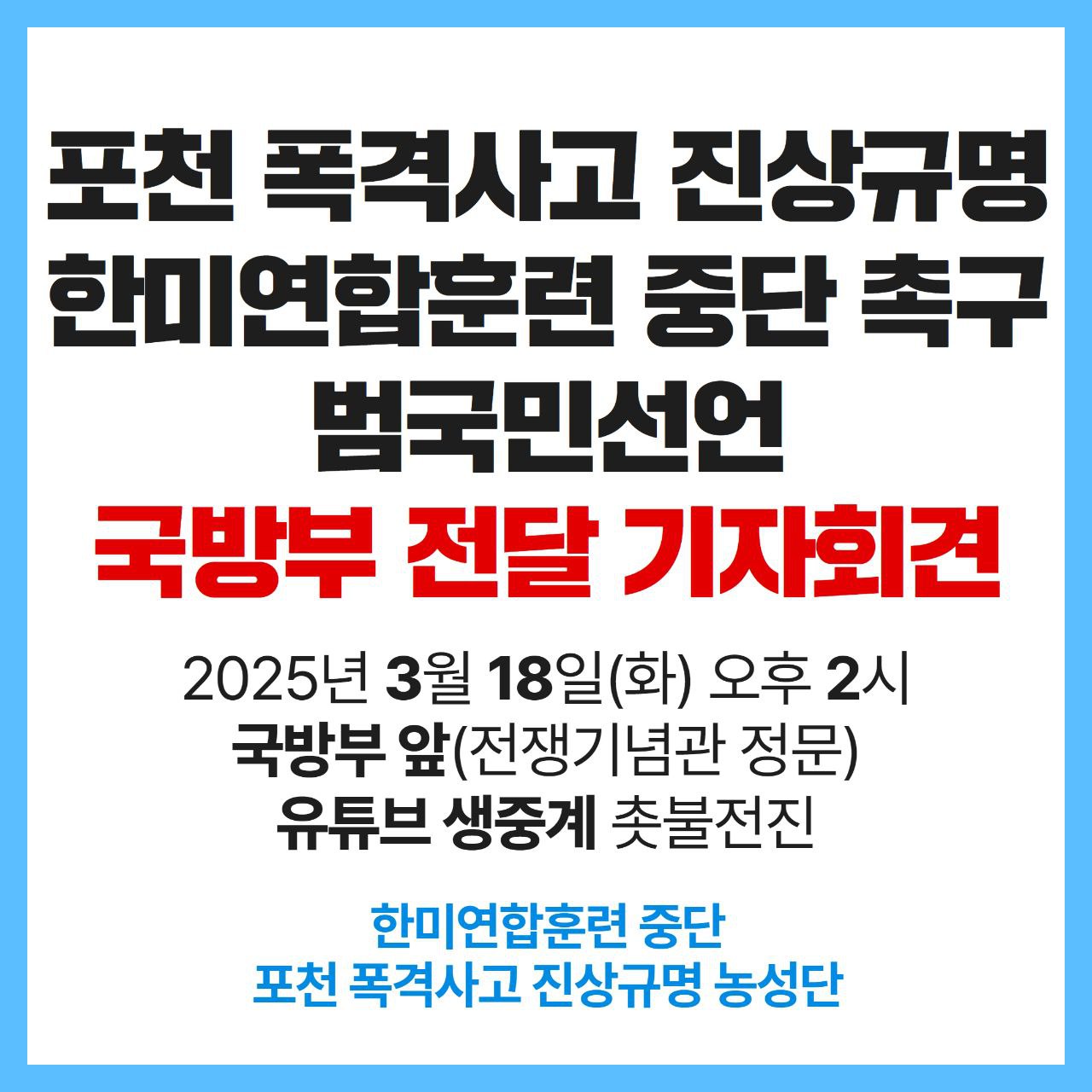 - 포천 폭격사고 진상규명, 한미연합훈련 중단 촉구 범국민선언 국방부 전달