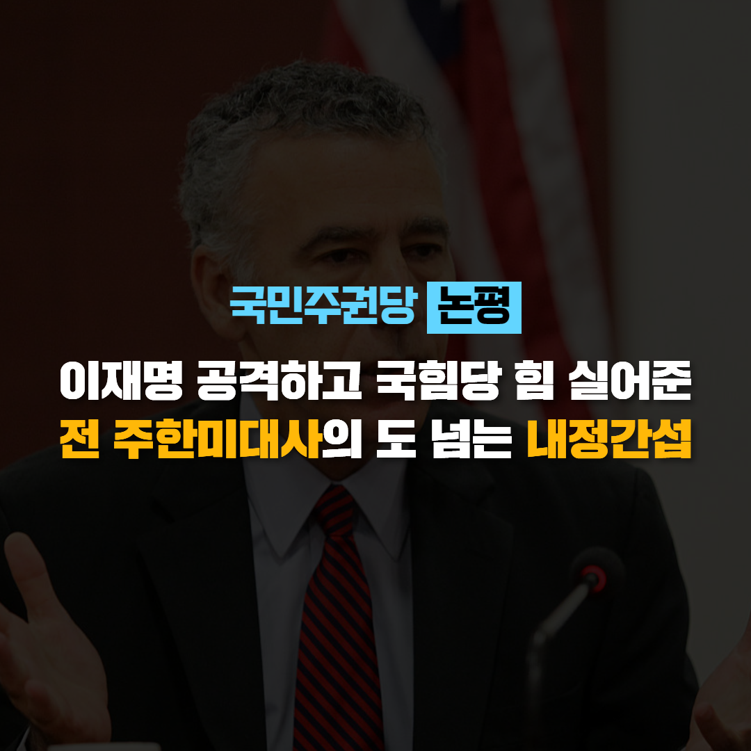 글 제목 : [논평] 이재명 공격하고 국힘당 힘 실어준 전 주한미대사의 도 넘는 내정간섭