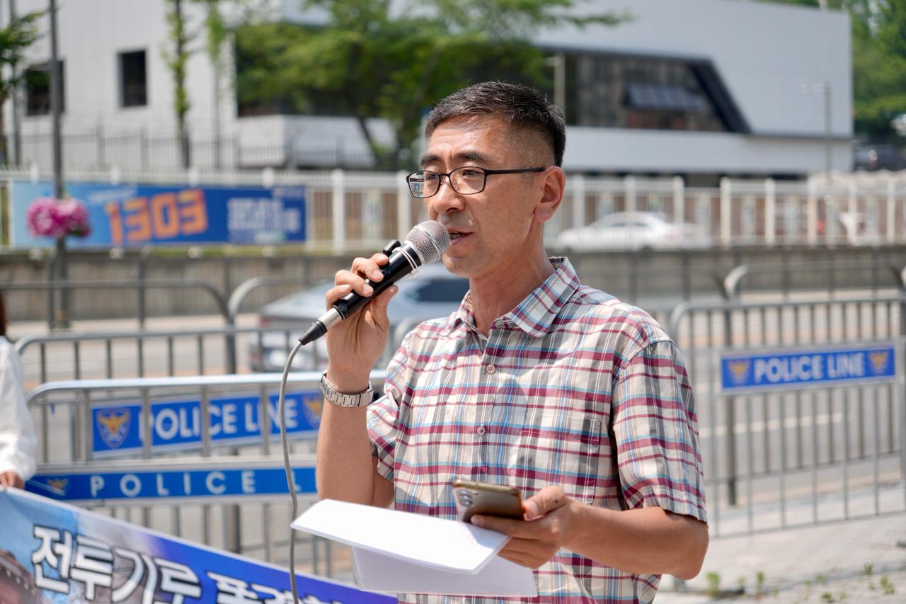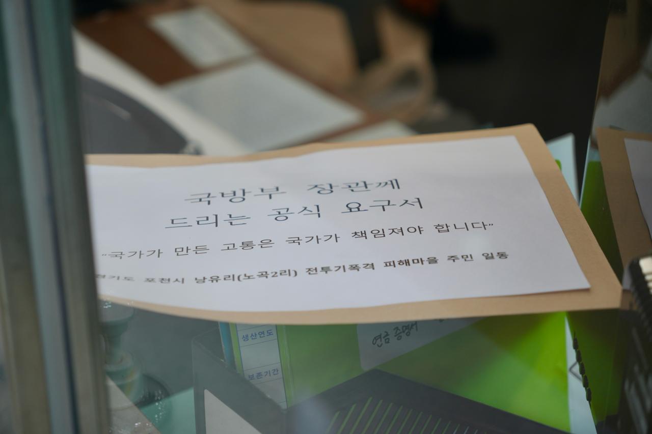 경기도 포천시 이동면 낭유리(노곡2리) 주민들이 5월 29일 광화문과 가까운 정부서울청사를 항의 방문했다. 전투기 오폭 피해를 당한 주민들은 고통이 계