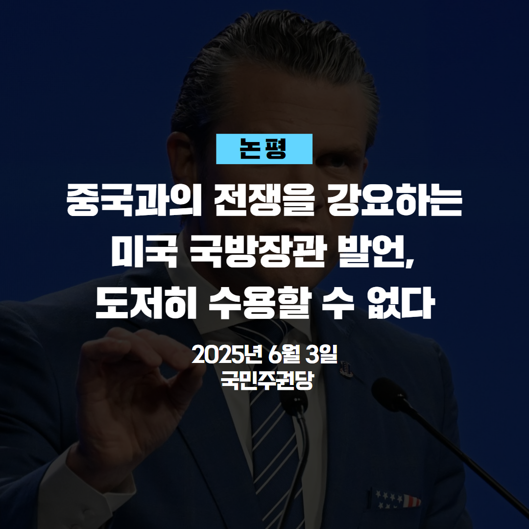 글 제목 : [논평] 중국과의 전쟁을 강요하는 미국 국방장관 발언, 도저히 수용할 수 없다
