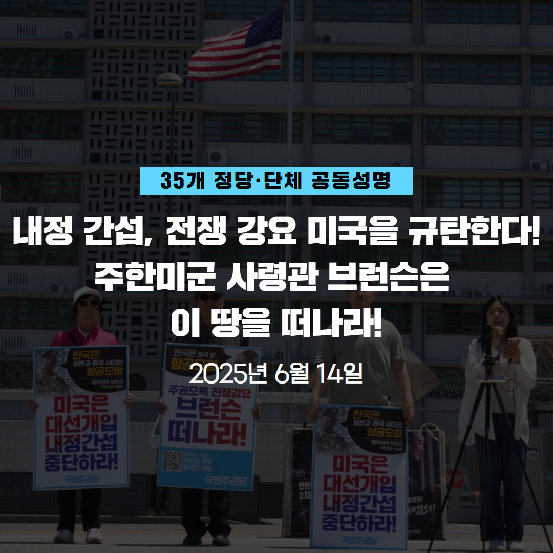 [35개 정당·단체 공동성명] 내정 간섭, 전쟁 강요 미국을 규탄한다! 주한미군 사령관 브런슨은 이 땅을 떠나라!