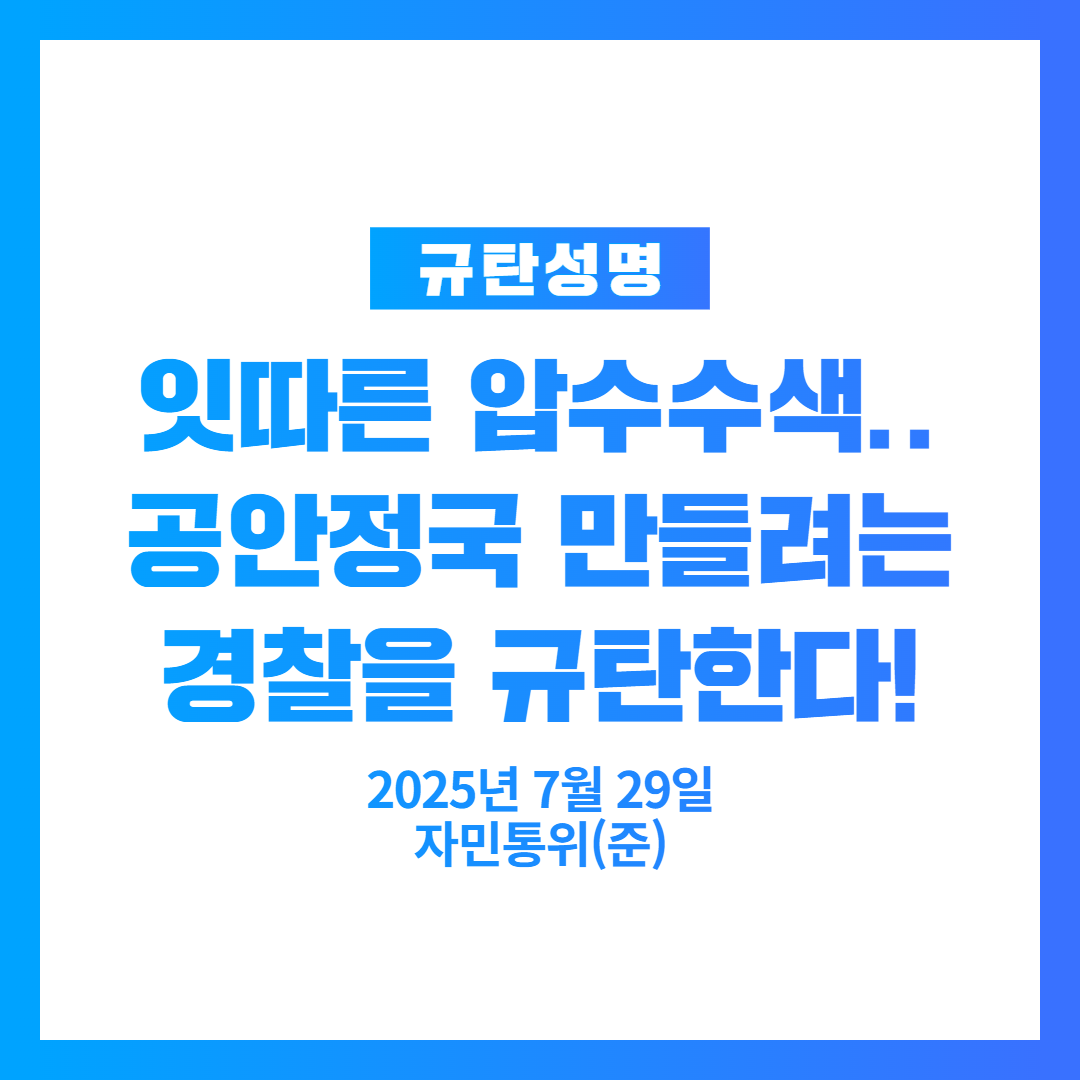 [자민통위 규탄 성명] 잇따른 압수수색.. 공안정국 만들려는 경찰을 규탄한다!!