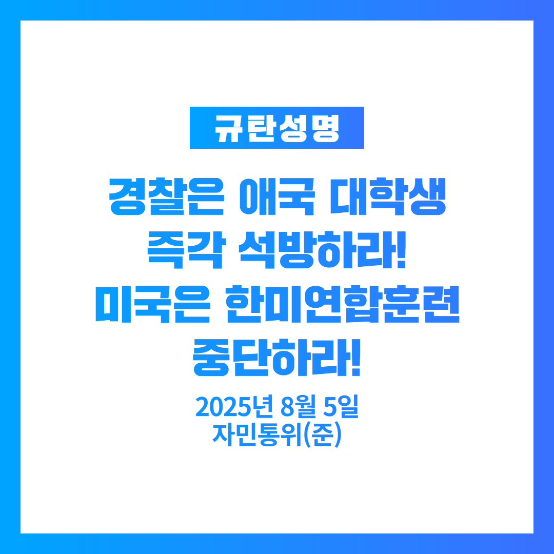 [규탄 성명] 경찰은 애국 대학생 즉각 석방하라! 미국은 한미연합훈련 중단하라!