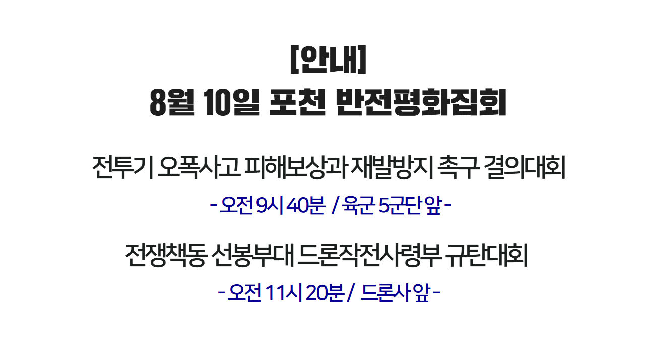 글 제목 : [안내] 8월 10일 포천 반전평화집회