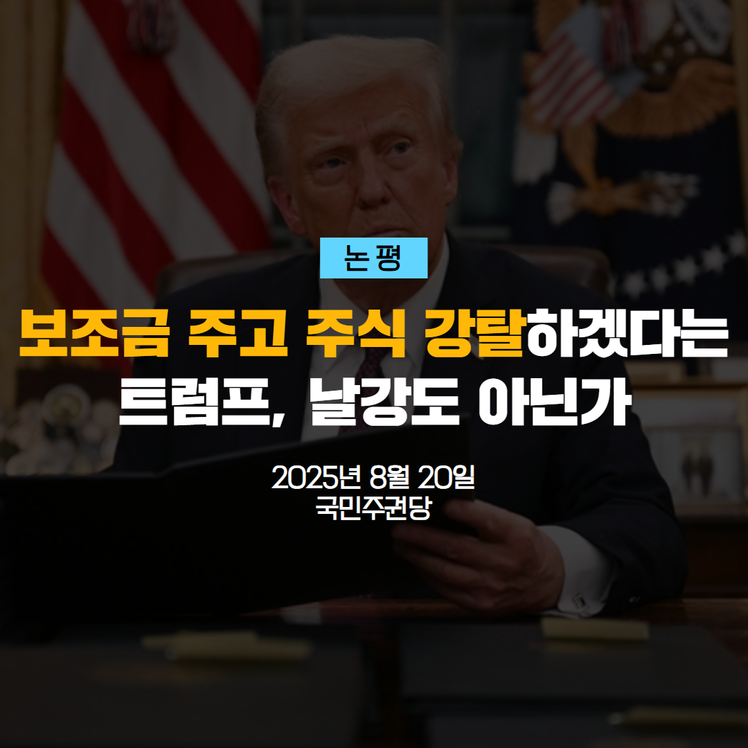 [논평] 보조금 주고 주식 강탈하겠다는 트럼프, 날강도 아닌가