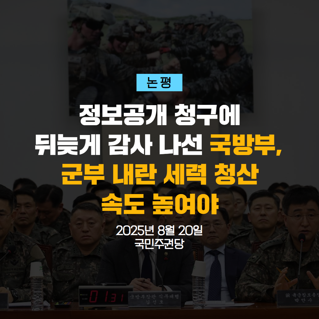 [논평] 정보공개 청구에 뒤늦게 감사 나선 국방부, 군부 내란 세력 청산 속도 높여야