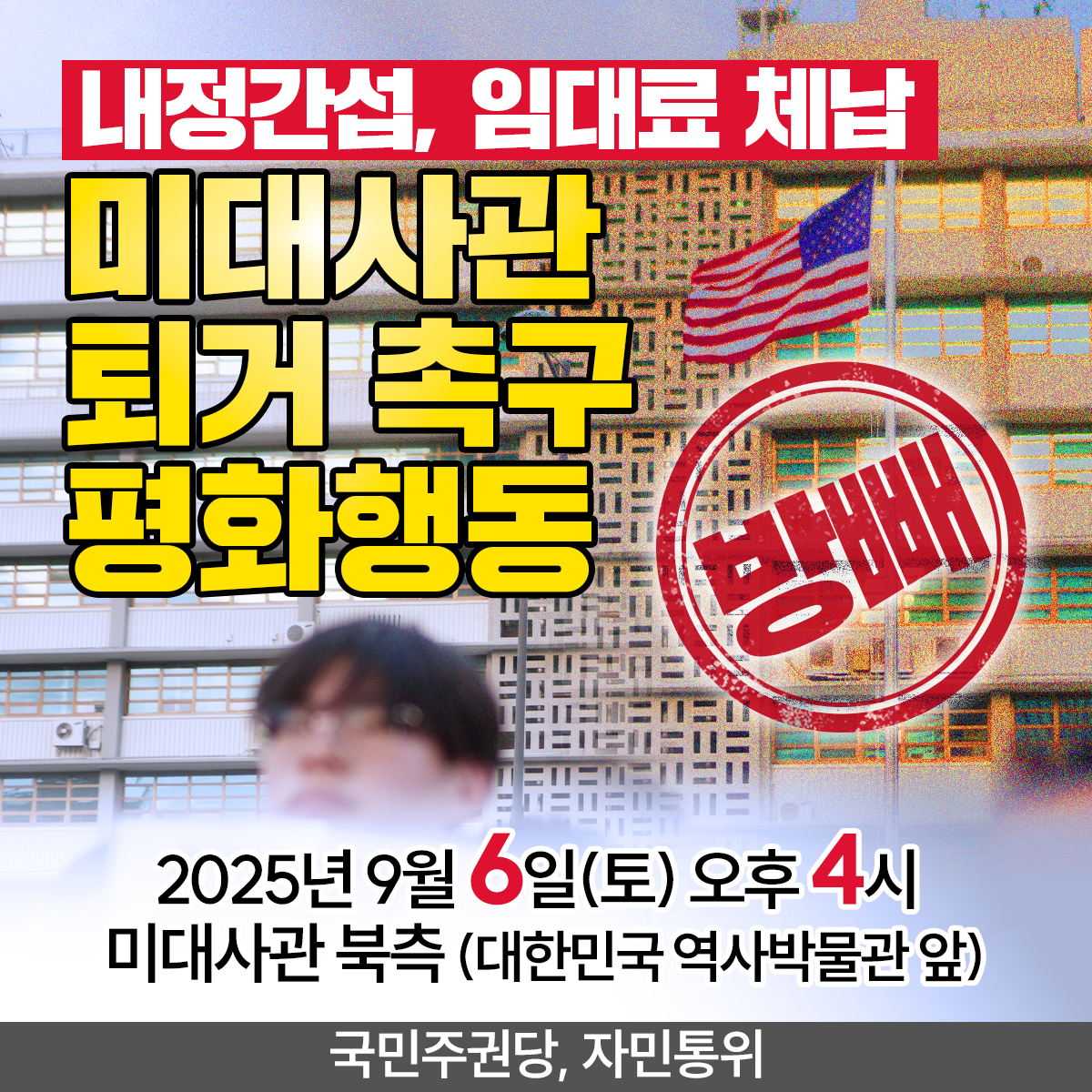 내정간섭을 일삼고, 수천억 임대료를 체납하고 있는 주한미대사관에 퇴거를 촉구하고자 합니다. 대한민국 주권자의 목소리를 당당하게 외치기 위한 자리에 많은 관심과 참여 바랍니다.