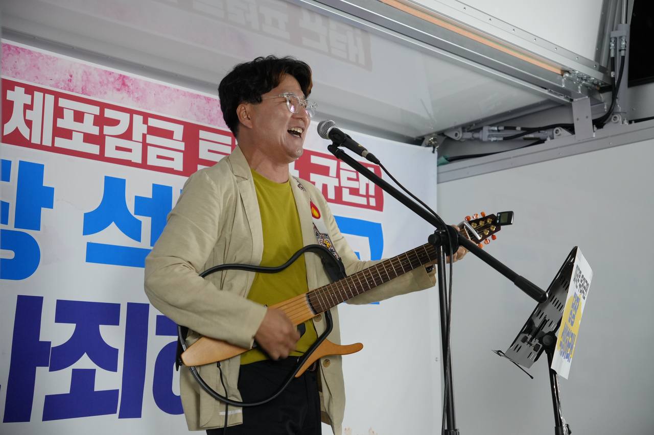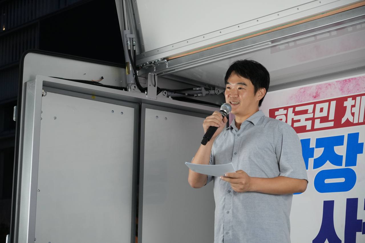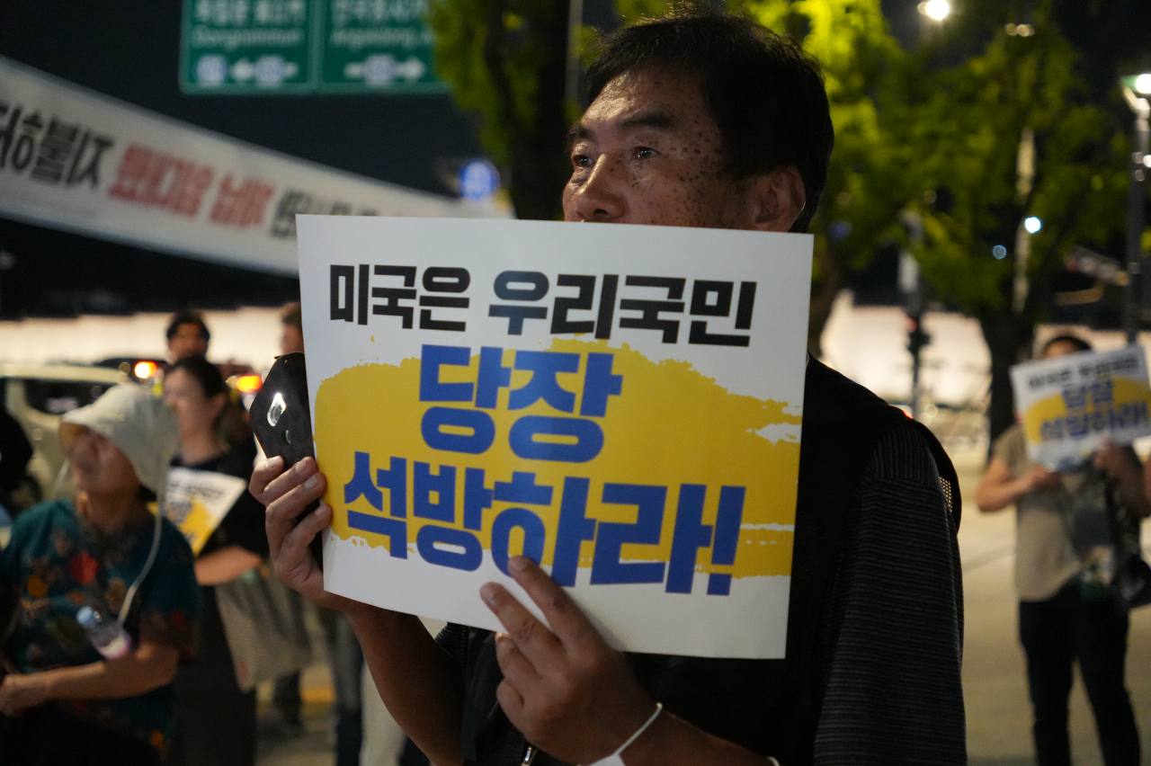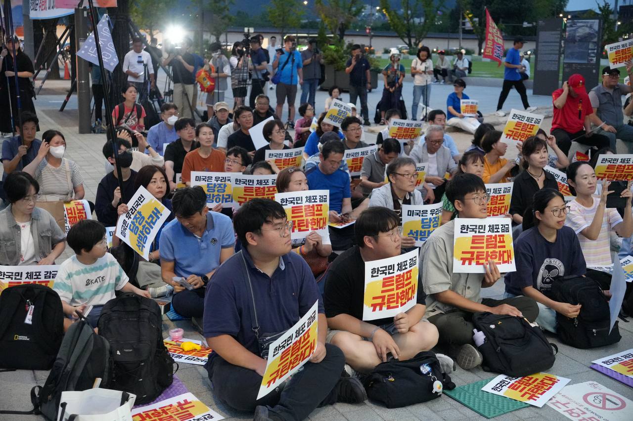 소식/활동 소식 2025. 9. 10. [사진] 9/8(월) 우리 국민 체포 감금한 트럼프 규탄 및 석방 촉구대회 글자 작게 글자 크게 인쇄 공유 닫기 이 글을 공유합니다. 카카오스토리 페이스북 네이버블로그 트위터 링크복사 글 작성 : 2025년 09월 10일 글 제목 : [사진] 9/8(월) 우리 국민 체포 감금한 트럼프 규탄 및 석방 촉구대회 ■ 중계 영상 ■ 사진 (왼쪽) 신동호 자주민주통일민족위원회 공동대표 (오른쪽) 고은광순 평화어머니회 상임대표 (왼쪽) 김용연 진보당 서울시당 위원장 (오른쪽) 안정은 한국대학생진보연합 상임대표 (왼쪽) 조하경 국민주권당 청년위원장 (오른쪽) 가수 백자 (왼쪽) 이형구 국민주권당 정책위 의장 공유하기 게시글 관리 국민주권당 저작자표시 (새창열림)